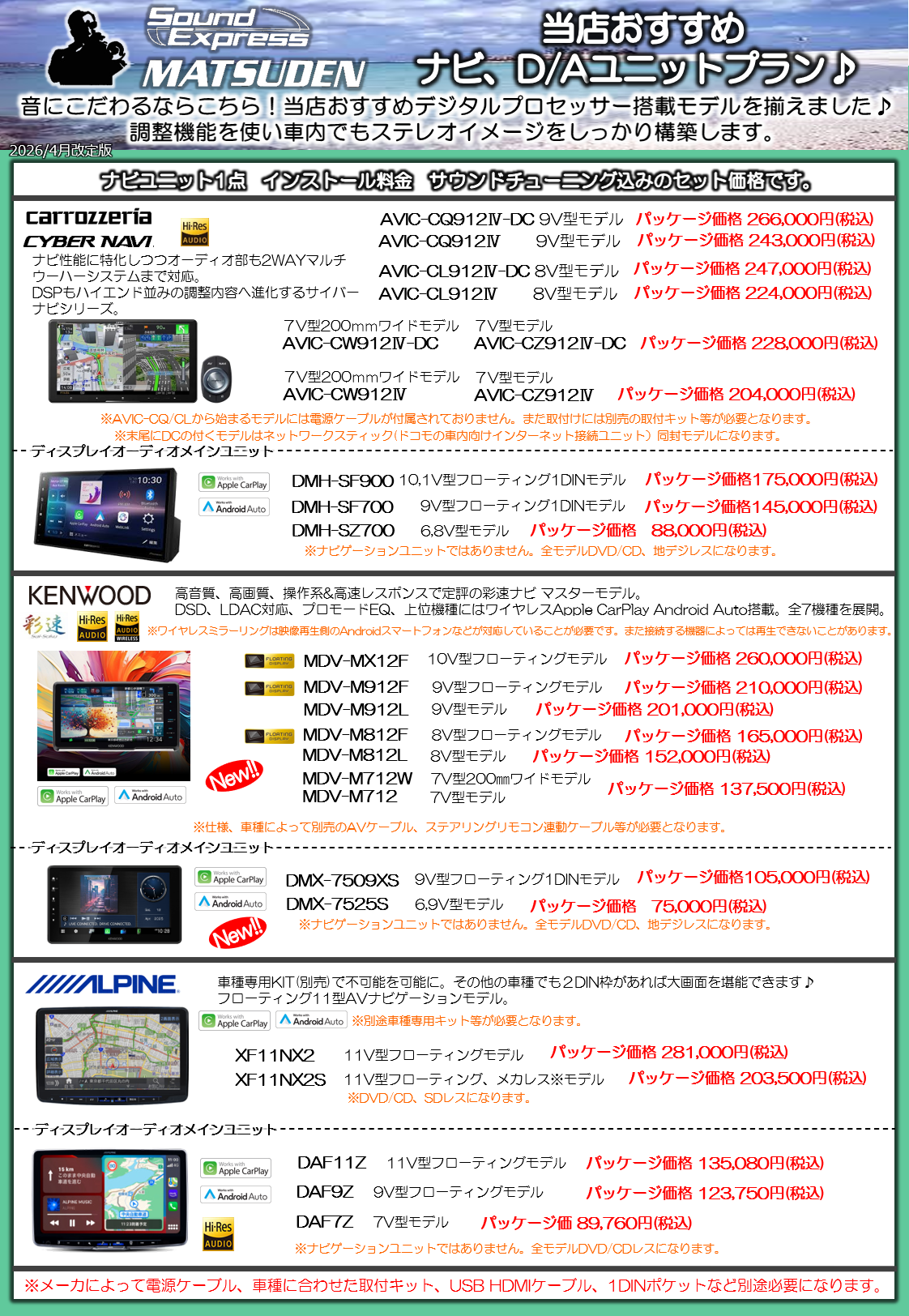 マツデンおススメのナビ・デッキ、プロセッサーアンプ交換など
